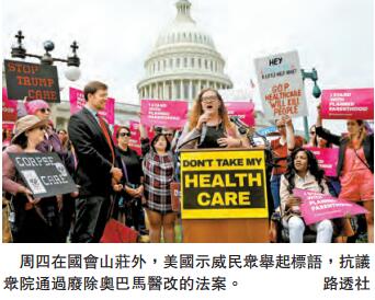 醫療改革是美國總統特朗普的一大競選承諾。他曾表示,被稱為「奧巴馬醫改」的《平價醫療法案》讓很多美國人醫保費用陡增,他將在上任後盡快「推翻並替換」「奧巴馬醫改」。共和黨3月曾嘗試在眾議院推動《美國醫保法》草案投票,但因共和黨內部對該草案仍存分歧,最後撤回了草案。本月3日,共和黨應部分議員要求在草案中增加了80億美元(約合623億港元)的醫保撥款,從而獲得了足夠支持。根據這一草案,美國各州有權保留或申請放棄「奧巴馬醫改」的關鍵條款。聯邦政府將撥款1380億美元在未來十年內補貼那些因為取消「奧巴馬醫改」而導致保費上升的人群。