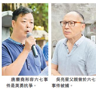 原來吳亮星父親曾於六七事件被捕,他坦言自己心情復雜,認為參與六七事件的死難者均為工人權益而犧牲,強調事件是因當時的警察暴力壓制而起。他透露,今年兩會期間曾向中央建議平反六七事件,他認為建議獲中央方面相當重視,但就不便透露更多細節。他又提到,六七事件與近年針對特區政府的活動目標并不一樣,認為不應將兩者比較。