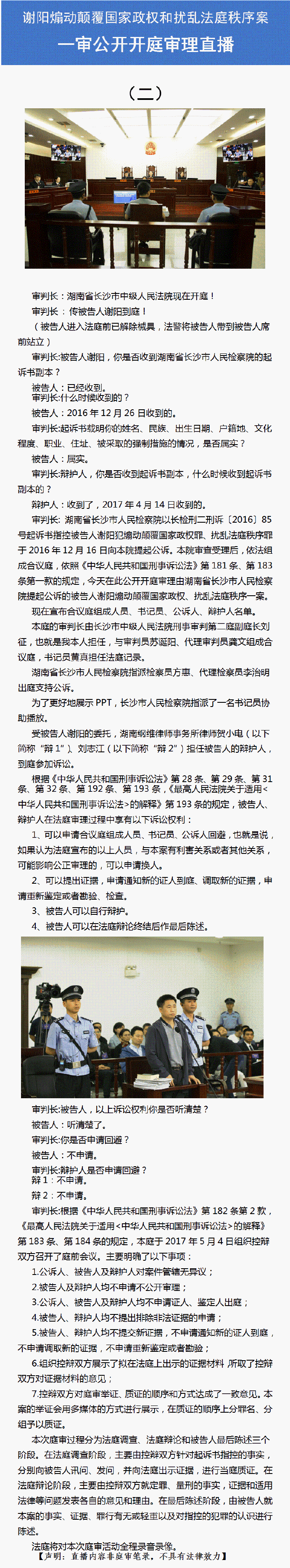 長沙市中級人民法院官方微博全程圖文直播庭審情況。