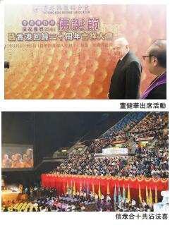 「今年七月一日是香港回歸祖國20周年的大日子,意義非凡。20年來,香港佛教聯合會匯聚四眾力量,全面拓展弘法利生事業,取得了一定的成績。香港佛教界一向熱心參與慈善救濟工作。世界各地發生重大災難時,香港佛教界總是伸出援助之手,足以顯示佛教同人慈悲喜舍之心。至於法布施,香港佛教聯合會以及各佛教團體,透過各種形式,致力弘揚佛法,為廣大信眾提供精神食糧。香港佛教聯合會舉辦的學校教育文化事業,以及佛學講座等弘法活動,無不是善盡佛教界對社會應盡的責任,以謀安定社會,净化人心。」智慧長老說。
