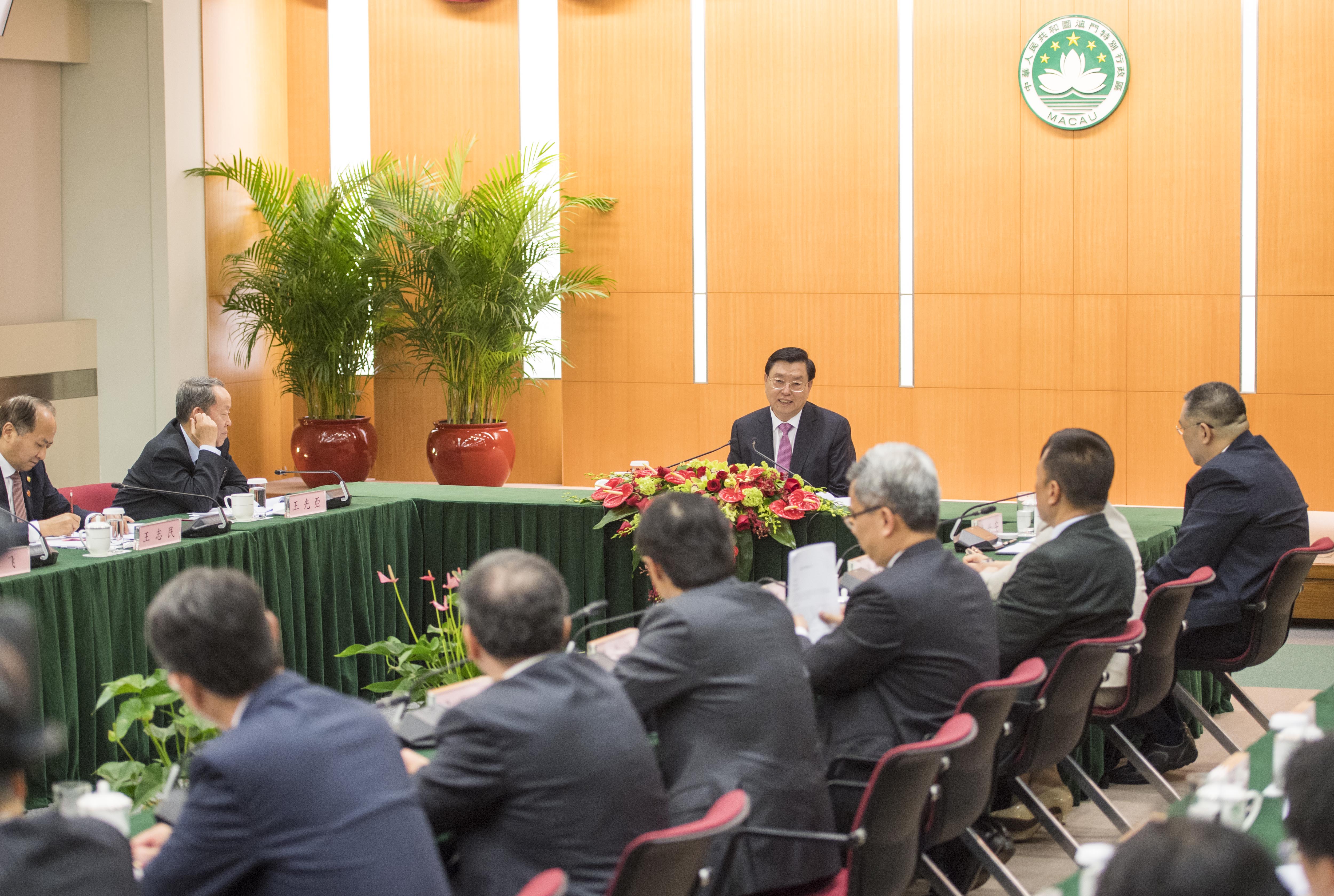 张德江昨午澳门特区政府总部听取澳府主要官员工作汇报。新华社