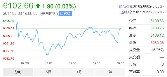 道指微漲5.34點,漲幅為0.03%,報21012.28點;納指漲1.90點,漲幅為0.03%,報6102.66點;標普500指數漲0.09點,報2399.38點。