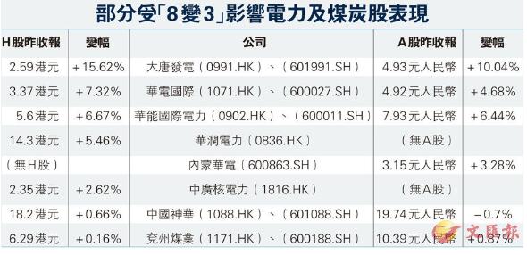 德銀內地電力股受惠減煤價及電費折扣收窄,以及中長期受惠行業整合,調升內地電力股目標價,首選華電國際(1071)、華能(0902)及潤電(0836)。