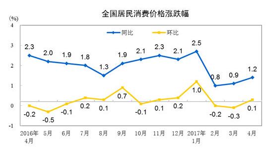 2017年4月份居民消費價格同比上漲1.2%