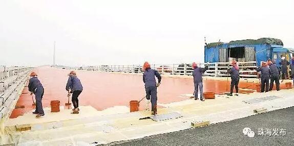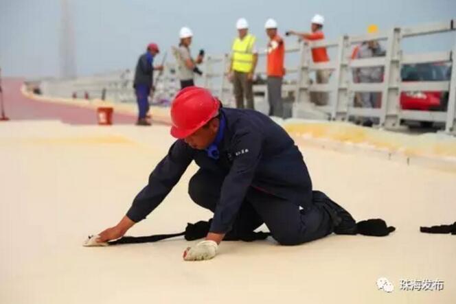 2017年5月6日下午5時許,在7名涂漆工人的推動下,隨著最后一滾筒的到位,港珠澳大橋主體工程的橋面防水層鋪裝工程全部完工。
