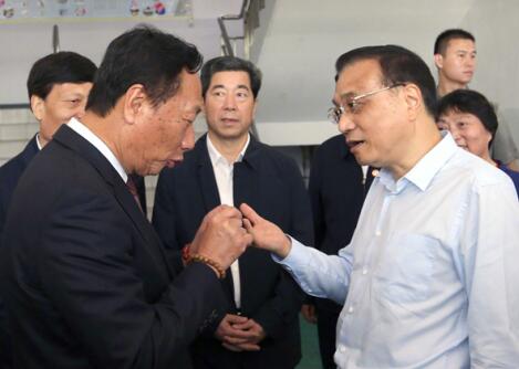 未來網北京5月10日電(記者方志越)據台灣“中央社”消息,美國白宮4月底證實鴻海集團董事長郭台銘曾短暫會晤美國總統特朗普。5月9日郭台銘又親自為前來考察鄭州富士康科技園的李克強總理作介紹,在廠房前兩人駐足交談5分鐘,臨上車前再次駐足交流。郭台銘短暫會見川普后又與李克強兩次駐足交談,這讓嗅覺敏銳的台灣政壇隱約感受到,2020年台灣地區領導人選舉,郭台銘會否成為最大變量。