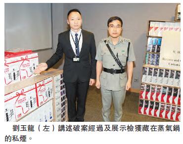 海關人員前日在文錦渡管制站截查兩輛入境貨車,兩車分別報稱載有408件不銹鋼蒸氣鍋,并在短短一個小時內先后闖關,因不銹鋼蒸氣鍋是常見廚具,主要用作打邊爐,但因運載的數量過多,疑有人圖魚目混珠,惹起關員懷疑作出截查,結果關員在兩車貨物當中,分別檢獲共400萬支私煙,估計市值約1100萬元,應課稅值約800萬元,當場將兩司機拘捕,并扣查該兩輛貨車。