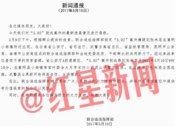 “5.02”案件聯合追逃指揮部發布新聞通報