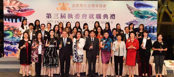 金紫荊女企業家協會第三屆執委會就職典禮,賓主舉杯祝酒,喜慶滿堂。
