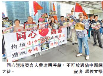 網民組織「同心護港」約十多位成員,昨日到律政司外請願,強烈要求律政司繼續起訴「占中」的漏網之徒,追究他們的法律責任。「同心護港」召集人曹達明,聯同部分示威者向律政司代表,遞交給予律政司司長袁國強的請願信,表達了訴求。