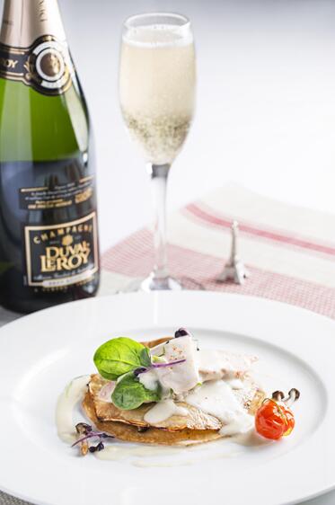 Duval-Leroy具成熟果梨甜香,配搭慢煮有機雞胸肉有助提味。