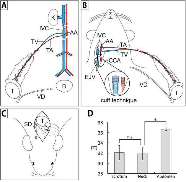 为了证实这一点,研究小组进行了两种手术——原位睾丸移植(OTT)和异位睾丸移植(HTT),原位睾丸移植是指睾丸植入其正常位置,异位睾丸移植是指切割睾丸移植在其它老鼠的颈部。