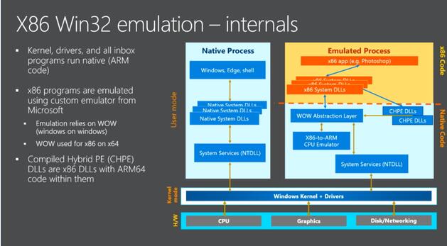 不要误会,ARM版Windows 10用一个模拟层运行x86应用。要让软件支持ARM只能改造软件,否则做不到,而改造软件从逻辑上讲又是不可能的。不过微软向我们承诺,模拟层采用的技术和理念与x86软件在x64平台上运行时是一样的,它提供的体验接近原生速度,不需要付出额外的代价。