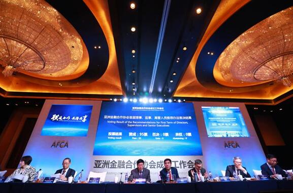 會議審議并通過了《亞洲金融合作協會章程》、《亞洲金融合作協會首屆理事、監事、高管人員推薦辦法及名額分配》、《亞洲金融合作協會首屆理事會工作規劃》等十三項議案,選舉中國銀行業協會會長田國立擔任理事長,選舉中國銀行業協會原專職副會長楊再平擔任秘書長。