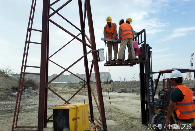 工作人員在瓜達爾港營區安裝衛星通信監控攝像頭 黃鵬華 攝