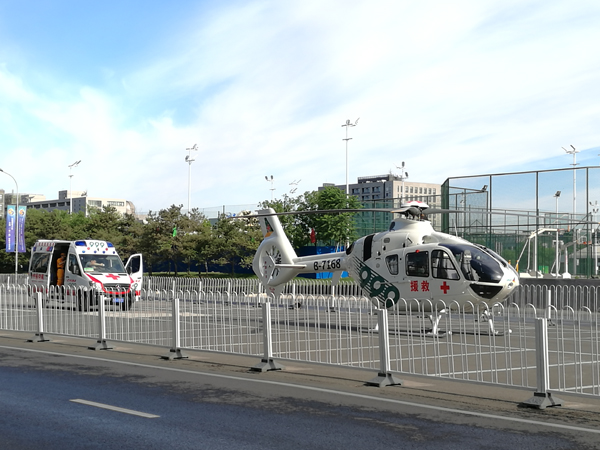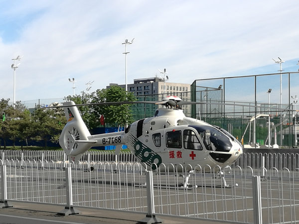 在位於國家會議中心的“一帶一路”國際合作高峰論壇會場旁停靠一架999醫療服務直升機引起記者們的注意,這架直升機並不大,據介紹999是與美國西科斯基飛機、德國空客公司合作,這款飛機型號是H135,為空客公司生產。其起飛降落會更加靈活,此次為了應對會議期間有可能出現的突發醫療狀況。