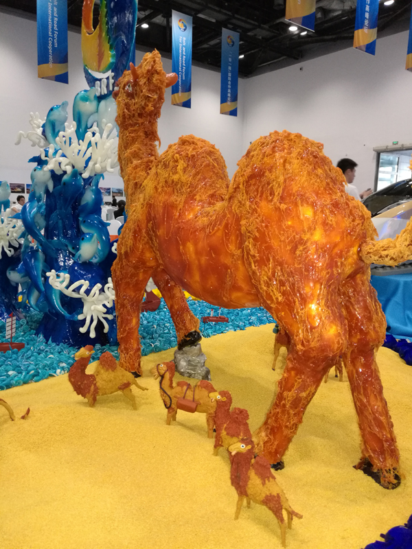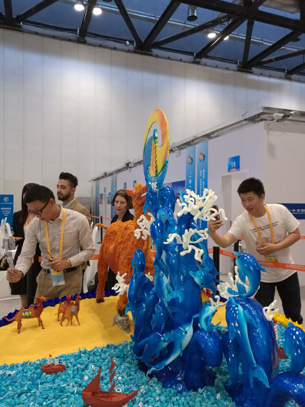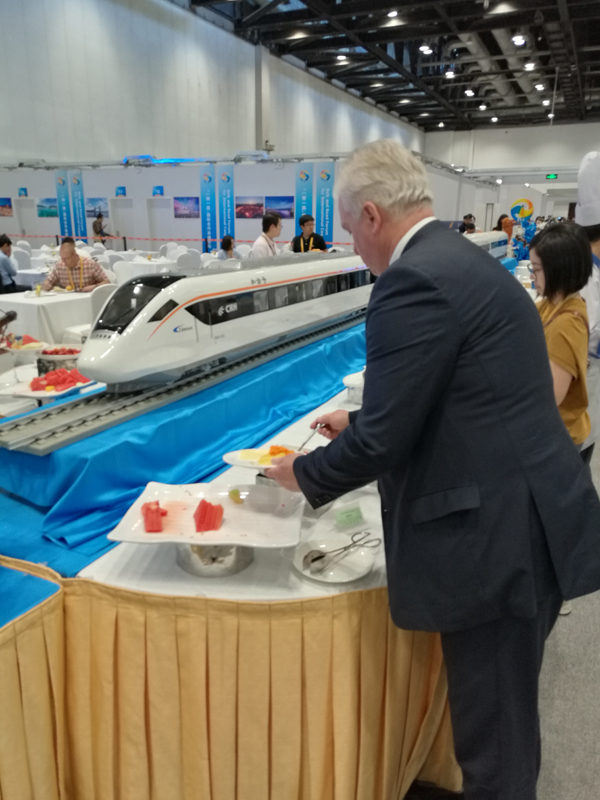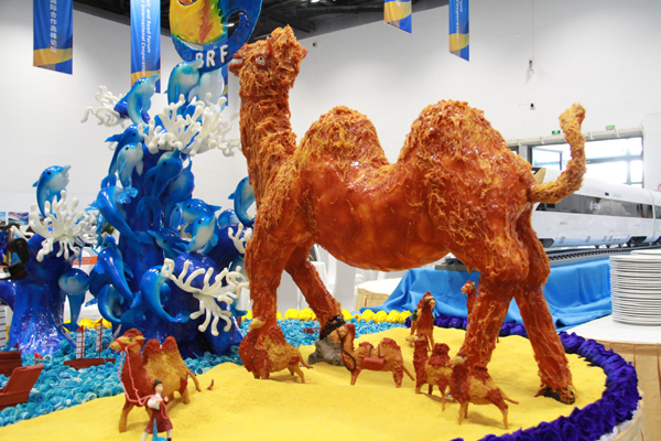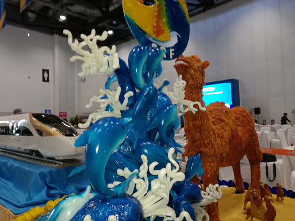 “一帶一路”國際合作高峰論壇開幕前,中外媒體的記者在新聞中心用早餐,早餐設計為海洋沙漠,豐盛獨特。