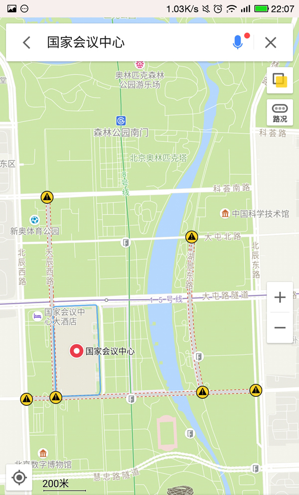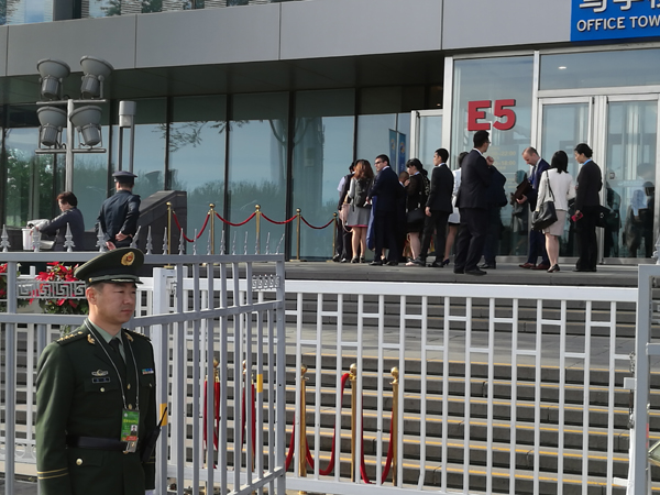 今天上午國家主席習近平主持開幕式,各國政要參會。此刻的北京彙集了29位外國元首、政府首腦,安保必然嚴格。上午八點至十點期間,國家會議中心提高了安保等級,昨天圍繞國家會議中心的三面“鐵馬”今日更升級為四面層層設障。