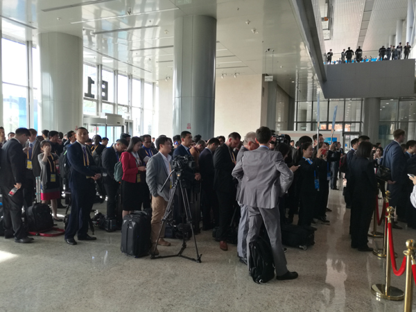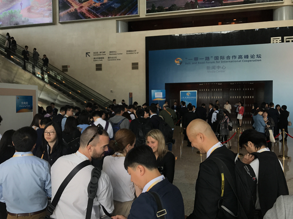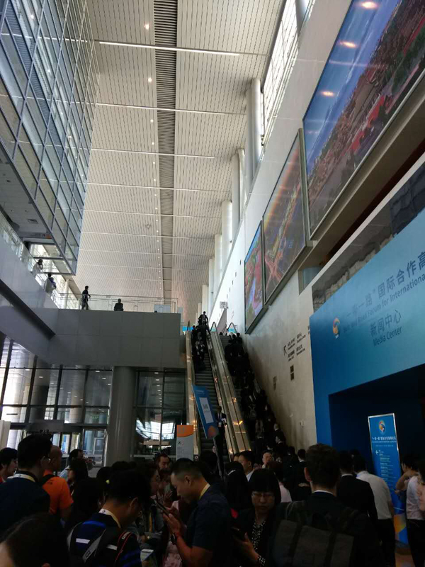 “一帶一路”國際合作高峰論壇高級別全體會議即將舉行,來自各國的近百名記者正在等候入場。高級別會議采用采用“1+6”模式,包括高級別全體會議和6場平行主題會議。6場平行主題會議分別聚焦“五通”和智庫交流。重點圍繞基礎設施、產業投資、經貿合作、能源資源、金融合作、人文交流、生態環境和海上合作等8個方面進行研討交流,共商合作方向,提出實施路徑,凝聚合作共識,推動務實成果。
