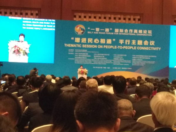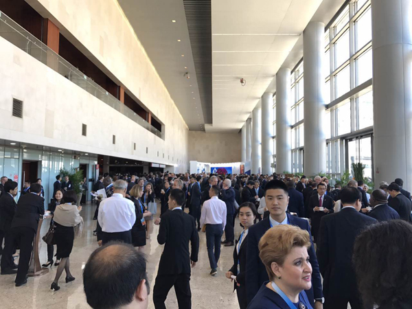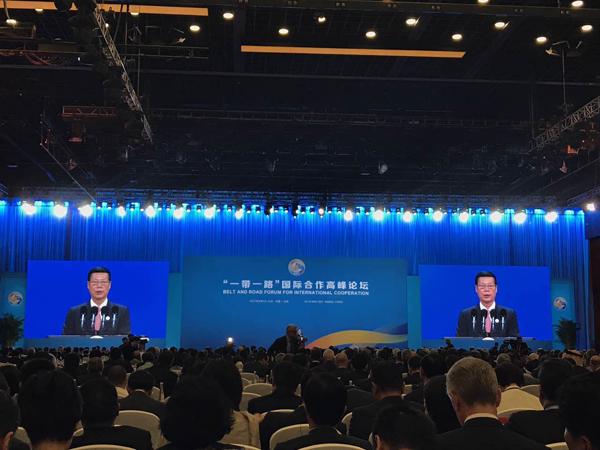 “一帶一路”國際合作高峰論壇正在舉行高級別全體會議,來自各國的嘉賓雲集。張高麗副總理在致辭中表示,未來五年,中國將進口八萬億美元的商品,吸收6000億美元的國外投資,對外投資7500億美元,出境旅遊7億人次。我們歡迎世界各國分享中國發展帶來的重大機遇!