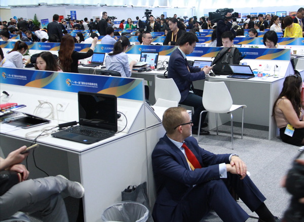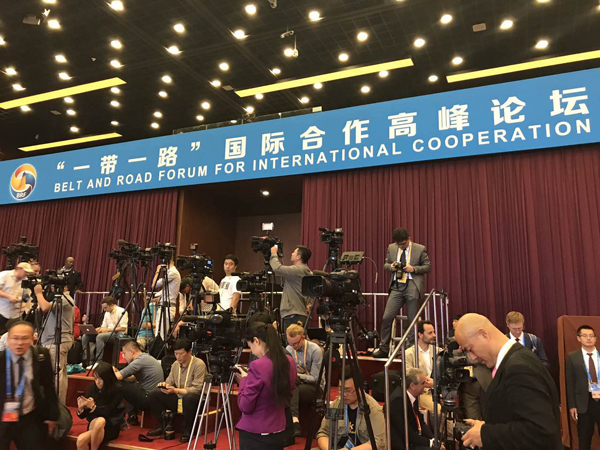 “一帶一路”國際合作高峰論壇上敬業的中外媒體