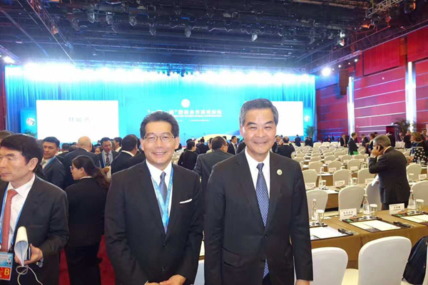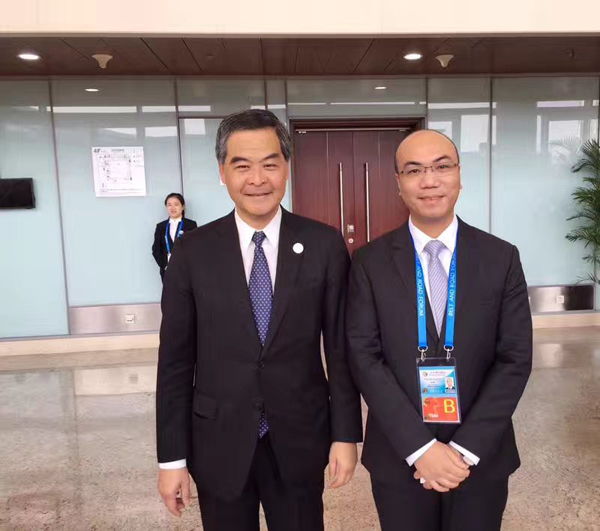參加峰會的香港特首梁振英和香港商務及經濟發展局局長蘇錦樑。