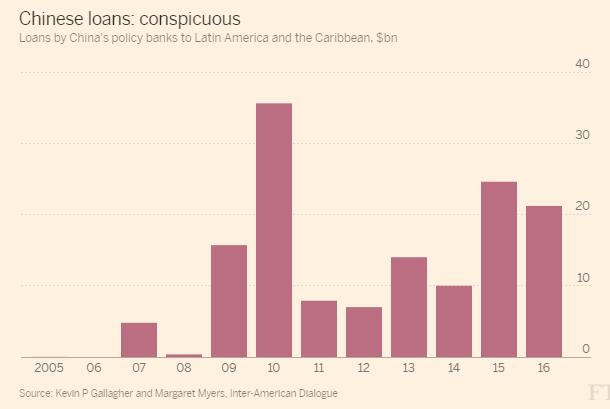 盡管該組織發現2016年中國進出口銀行(Export-Import Bank of China)和中國國家開發銀行(China Development Bank)為拉美政府和國企提供的資金較上一年減少近14%,但邁爾斯指出“如果說這能說明什么的話,那就是說明了中國對拉美興趣不減。考慮到該地區的風險水平,我本來預計這個(數字)的降幅會大得多。”