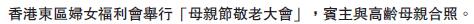 【香港商報網訊】記者謝巧玲報道:香港東區婦女福利會昨日假北角富臨皇宮舉行「母親節敬老大會暨香港特別行政區成立二十周年慶祝活動」,逾600人出席,共慶母親節,場面溫馨熱鬧。福利署東區及灣仔區福利專員葉巧瑜、東區民政事務助理專員魏麗盈擔任主禮嘉賓,并在會長陳趙滿菊、主席梁淑莊陪同下,向16位年齡由90至101歲的高齡母親大派利是,并向在場的所有母親送上禮物包,以示對她們一份敬意。