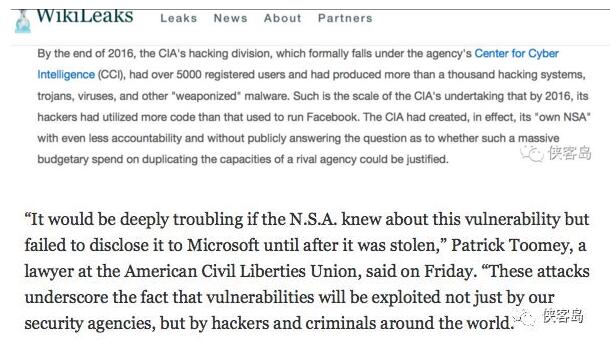 因此,在此次“永恒之藍”爆發之后,《紐約時報》的報道就稱,“如果確認這次事件是由國安局(NSA)泄漏的網絡武器而引起的,那政府應該被指責,因為美國政府讓很多醫院、企業和他國政府都易受感染”。