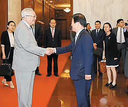 中國前國委員唐家璇(左)會見朴炳錫一行