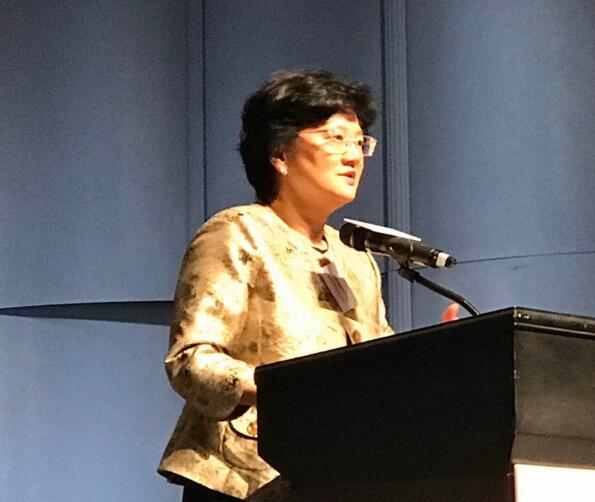 拔萃女書院校長劉靳麗娟演出前用普通話發言,歡迎鄰居學子到訪香港做客。
