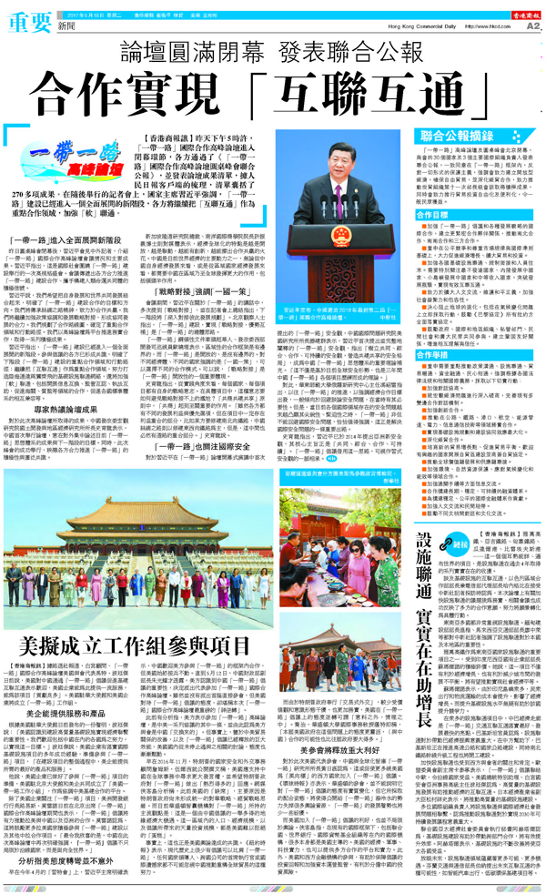 「一帶一路」高峰論壇落幕,香港商報這樣報道