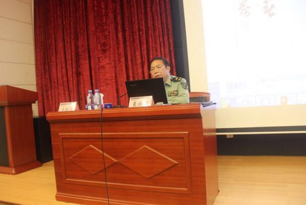 講座開始,一身軍裝的朱向前老師朝所有聽眾致以標準的軍禮,然后才落座,他以當下正在召開的“一帶一路”峰會為切入點,他認為國家對文化的認識越來越到位、深刻,國家要有文化自信,并從“詩詞大家”、“文章大家”、“書法大家”三個角度論證他對毛澤東文化巨人的定位。