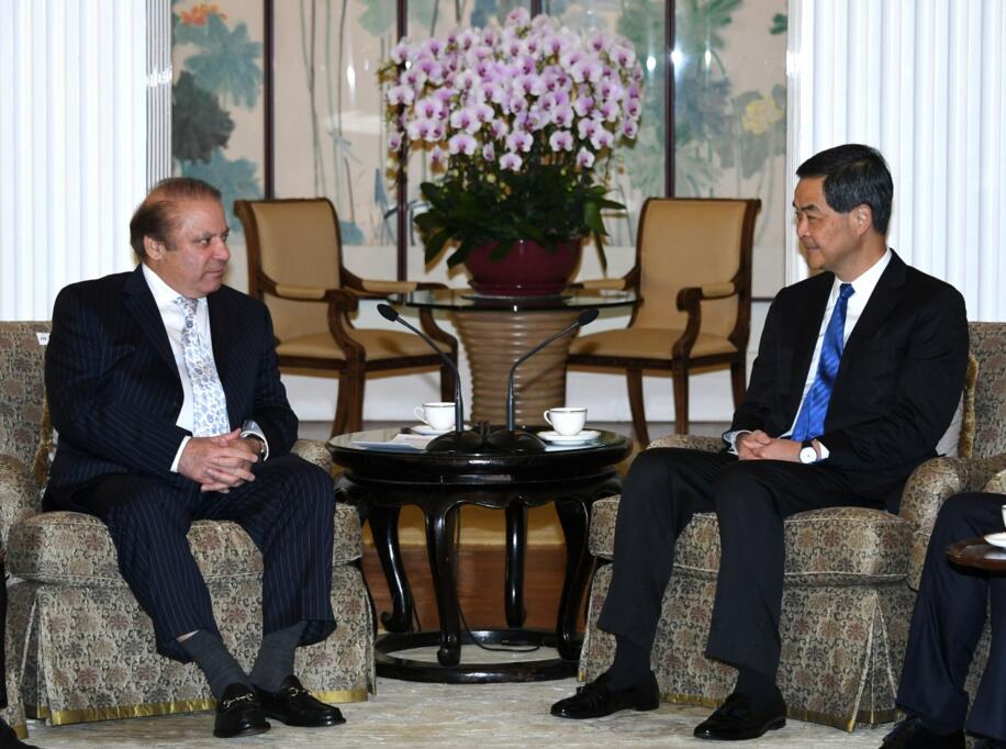 行政長官辦公室發稿指,梁振英與謝里夫雙方共同關心的課題交換意見。梁振英表示香港致力加強與新興市場的聯繫以擴大貿易網絡,期望深化兩地經貿關係,指香港能夠擔當「超級聯繫人」為巴基斯坦企業連結內地市場,以把握「一帶一路」倡議下的龐大商機。