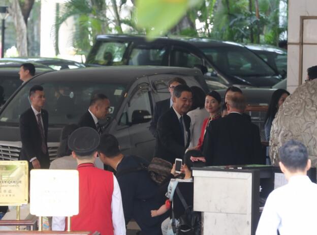 梁振英近12時半抵達香港香格里拉酒店出席論壇。(蔡正邦攝)