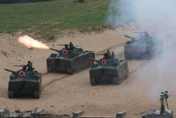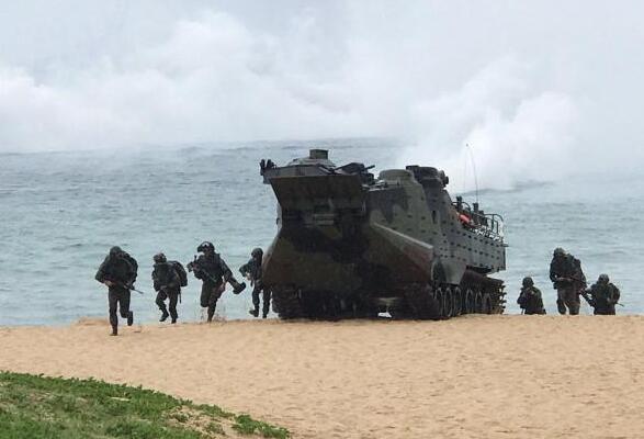和以往的“漢光”演習一樣,這次演習中由台海軍陸戰隊扮演登陸部隊,在演習高潮階段,台軍坦克部隊一如既往,以密集隊形開上灘頭對海射擊。當然,這樣的演習與解放軍在朱日和舉行的無預案士兵對抗演習相比,根本談不上貼近實戰,實際上就是一場表演活動。“中央社”報道中提到,現場觀看演習的圍觀群眾比參加演習的海軍陸戰隊官兵還多。