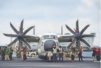 韓媒稱,美國航母在朝鮮半島周邊海域逗留15天以上實屬罕見。圖為「卡爾文森」號航母的一架C-2艦載運輸機。