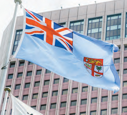 台北世貿中心國際貿易大樓廣場上的斐濟國旗。