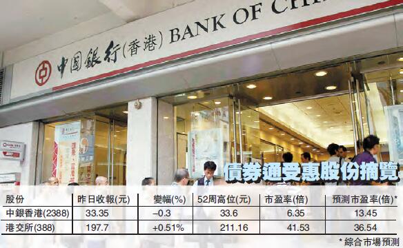 該行亦提到,所有香港銀行都將受惠「債券通」,其中以中銀香港最能受惠,主因其企業客戶規模較大,而且與內地國企和私人企業關系良好。