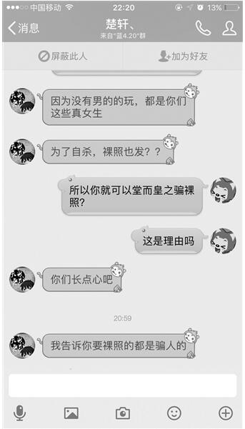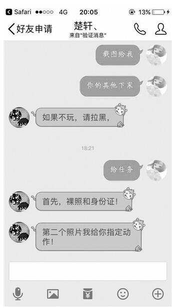 以“加真群”為名騙裸照 然后威脅索要錢財