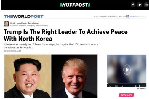 15日,洪錫炫在美國《赫芬頓郵報》上發表《特朗普是和平解決朝鮮問題的正確領導人》。他在文章中說,如果特朗普能夠和中國、韓國共同建立一個路線圖,那么,他將成為和平解決朝鮮核問題的美國總統。洪錫炫認為,美國首先停止朝鮮在核武器和導彈方面的發展;不過前提是美國必須向朝鮮保證美國不會推翻朝鮮政權,并不會入侵朝鮮。第二步,美國要開始和朝鮮的對話或者談判;洪錫炫認為,六方會談機制依然重要,這也是解除朝鮮對韓國、美國威脅的重要步驟。