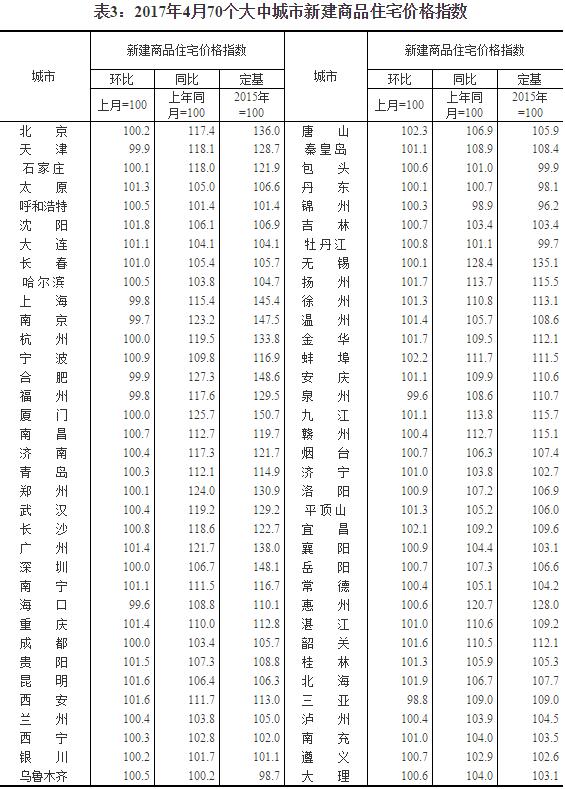 国家统计局今日发布了2017年4月份70个大中城市住宅销售价格统计数据。对此,国家统计局城市司高级统计师刘建伟进行了解读。