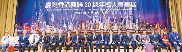 【香港商報網訊】記者司徒穎報道:為慶祝香港回歸祖國二十周年,由香港老人文化交流促進會與香港《紫荊》雜誌社合辦的「兩岸三地名人名家書畫展」日前假九龍尖沙咀會堂舉行開幕典禮,當天各界社會賢達出席,場面熱鬧。應邀主禮嘉賓包括立法會議員劉國勋、中華老人文化交流促進會會長會議主席古今生、台灣90高齡將軍張文煥、台灣婦女黨主席涂明慧、香港商報副總經理徐文等。