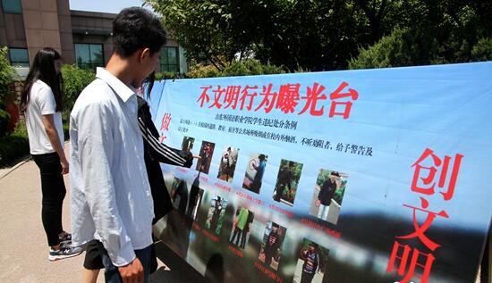 該校宣傳部王部長也稱,校園不文明行為曝光臺還將繼續設置下去,學校對各種不文明行為的曝光力度也不會減小,希望廣大學生自覺遵守學校各種規章制度,樹立當代大學生的正面形象。(大眾網-山東24小時記者侯彥平陳鵬飛)
