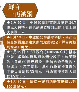 另有知情人士向內地媒體透露,「資本玩家」鮮言於近日被刑拘,涉嫌罪名是「背信損害上市公司利益罪」。