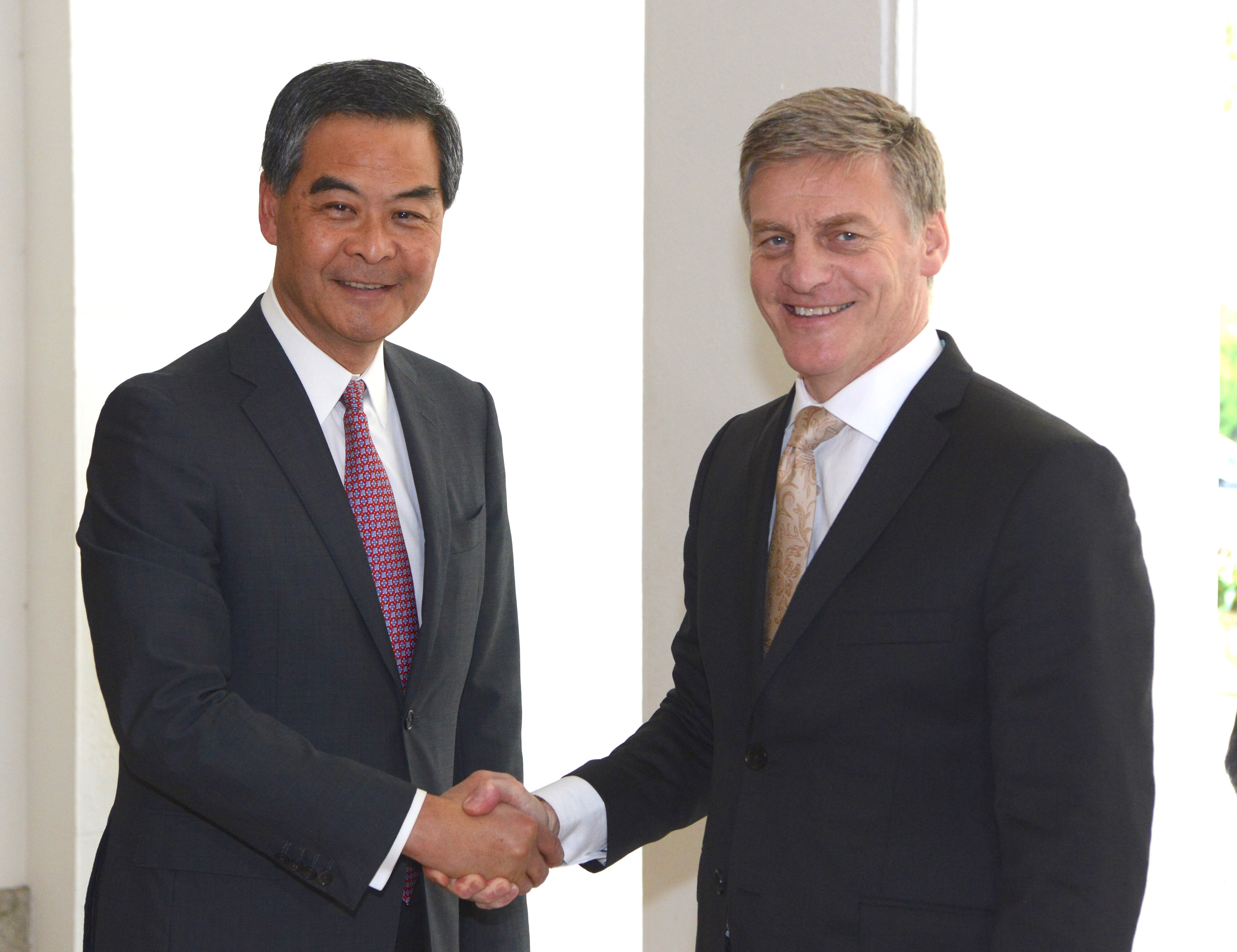 【香港商報网訊】行政長官梁振英(CY)昨日下午在禮賓府與訪港的新西蘭總理比爾英格利希(圖右)會面,就雙方關注的議題交換意見。CY指出,香港與新西蘭經貿關系密切,期望兩地繼續在不同範疇加強交流和合作,并利用香港在國家「一帶一路」倡議下的巨大發展潜力,開拓更多商機。CY又表示,香港擁有「一國」及「兩制」的雙重優勢,可發揮「超級聯繫人」的作用,協助新西蘭企業開拓內地市場。