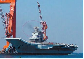 中國首艘自制航空母艦烟囪冒黑烟的照片近期在網絡流傳。有網友稱,18日14時許,001A主機點火試車,烟囪冒出不是很濃的黑烟。中國軍事專家李杰認為,目前的主機試車應該屬於*裝過程中的各系統測試,距離航母下水還不到一個月的時間。但此次試車并不是試航的前兆。