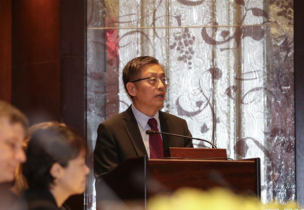 5月19日,中投公司总经理屠光绍在纽约代表处开业仪式暨投资研讨会上致辞。新华社记者 王迎 摄