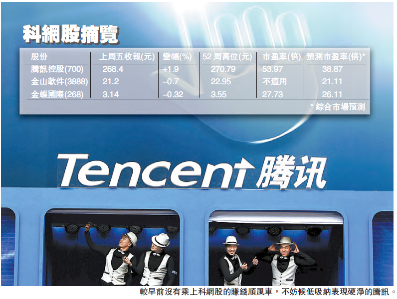 葛咸城上周四再發表長達43頁的報告,翻出瑞聲科技(2018)的其中一家關聯公司,導致瑞聲股價急跌近10%后停牌,事件更引發科網股小股災,IGG(799)原本創上市新高,卻在收市急挫14%,科網龍頭騰訊升幅急縮,收市僅升1.5%,但股價調整即有資金入市,令大部分科網股於翌日企穩,后者更承接早前升勢,收市報268.4元,升超過5%,故要數現時「最硬净」的股份,騰訊非占一席位不可。