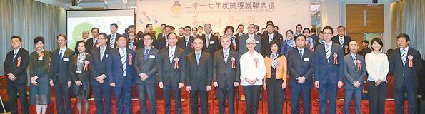 主禮嘉賓劉江華(前排右九)及樂善堂總理會成員合照。